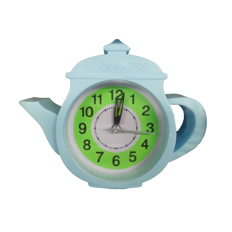 Επιτραπέζιο ρολόι-ξυπνητήρι σε σχέδιο τσαγιέρα και πρακτικό μέγεθος που μπορεί να ταιριάξει σε κάθε χώρο.