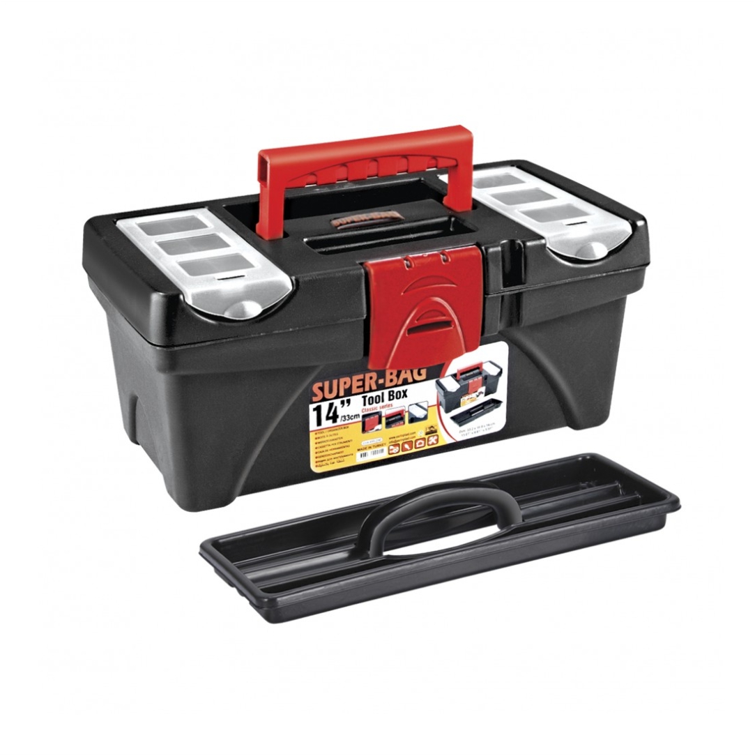 Εργαλειοθήκη χειρός 14". Κατασκευασμένη από ανθεκτικό πλαστικό. Ιδανική για να αποθηκεύετε και να οργανώνετε τα εργαλεία σας. Διαστάσεις 32 x 16 x 14.5 cm.