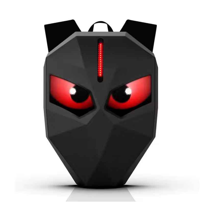 Εντυπωσιακό σακίδιο πλάτης για μοτοσυκλέτα με LED φωτισμό τύπου “μάτια”, σκληρό εξωτερικό περίβλημα και δυναμικό design για υψηλή ορατότητα και μοναδικό στιλ στον δρόμο. Διαθέτει εσωτερικό χώρο για κράνος ή προσωπικά αντικείμενα, ρυθμιζόμενους ιμάντες, και είναι κατασκευασμένο από αδιάβροχα υλικά υψηλής αντοχής.