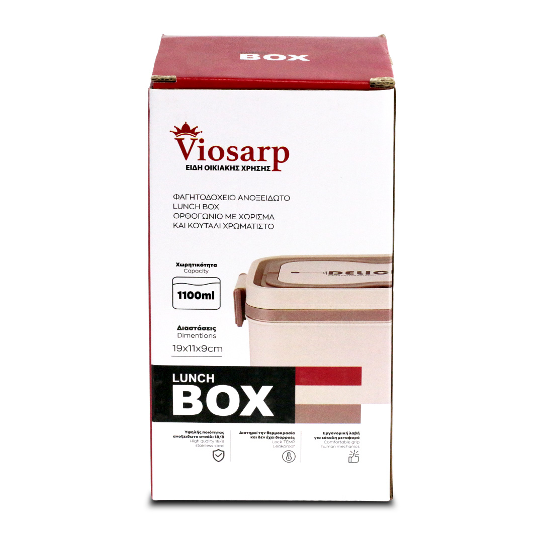 ΦΑΓΗΤΟΔΟΧΕΙΟ ΑΝΟΞΕΙΔΩΤΟ LUNCH BOX ΟΡΘΟΓΩΝΙΟ ΜΕ ΧΩΡΙΣΜΑ ΚΑΙ ΚΟΥΤΑΛΙ ΧΡΩΜΑΤΙΣΤΟ 1.1L 19x11x9cm VIOSARP