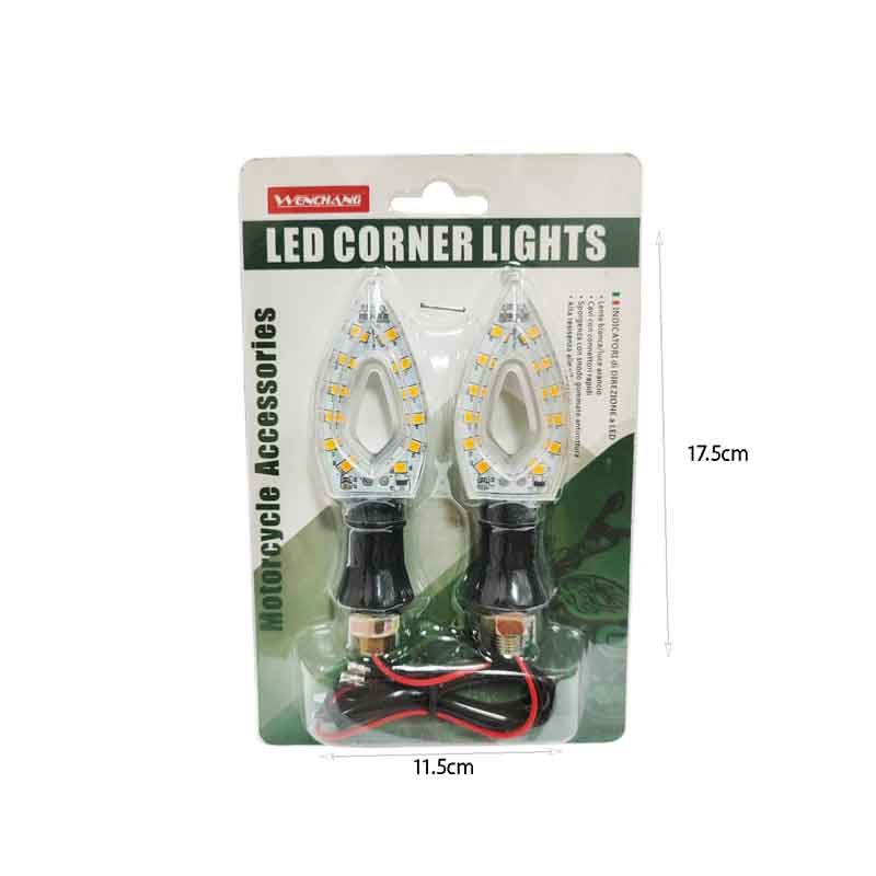 Σετ LED φώτων γωνίας για μοτοσυκλέτες, σχεδιασμένα για βελτιωμένη ορατότητα και μοντέρνα εμφάνιση. Παρέχουν έντονο και καθαρό φωτισμό, συμβάλλοντας στην ασφάλεια κατά την οδήγηση, ιδιαίτερα σε συνθήκες χαμηλού φωτισμού. Κατάλληλα για χρήση ως βοηθητικός ή διακοσμητικός φωτισμός. Εύκολη τοποθέτηση και ανθεκτική κατασκευή για καθημερινή χρήση. Περιλαμβάνονται δύο τεμάχια.