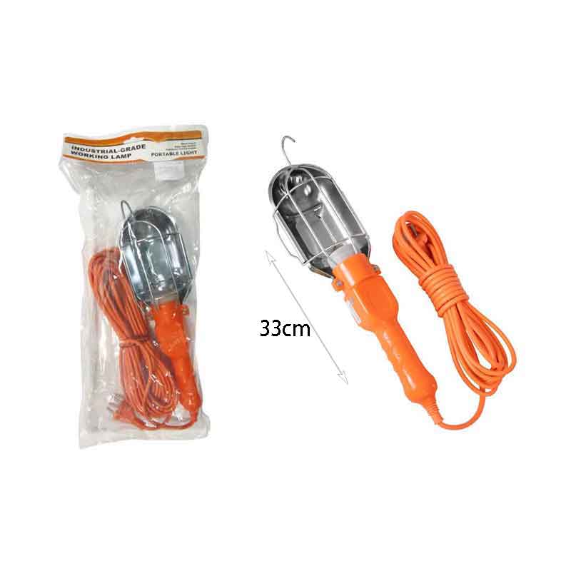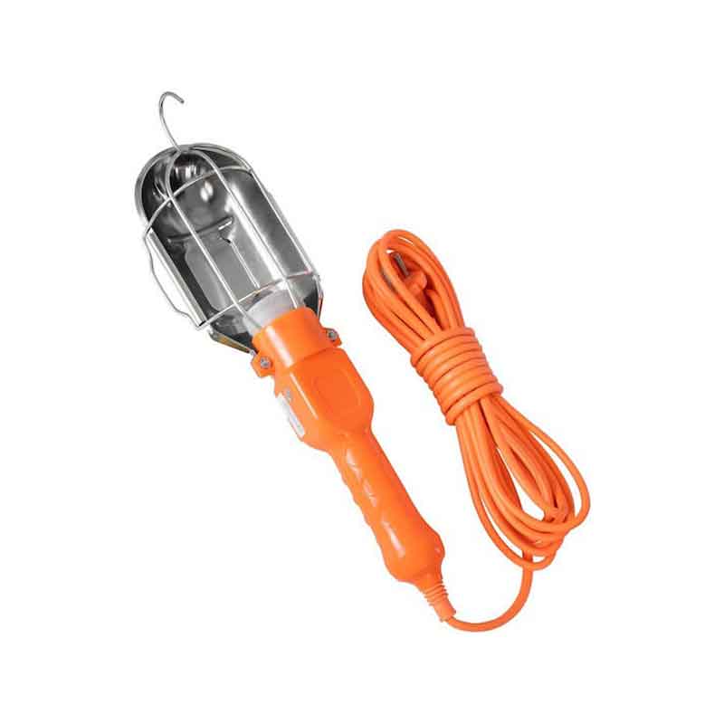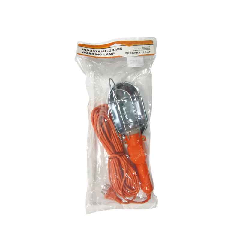 Ανθεκτική και πρακτική λάμπα εργασίας, ιδανική για επαγγελματική και οικιακή χρήση. Διαθέτει προστατευτικό μεταλλικό κλωβό, γάντζο ανάρτησης για εύκολη τοποθέτηση και μακρύ καλώδιο για ευελιξία στην εργασία.