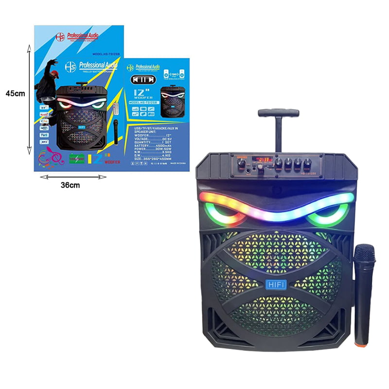 Φορητό ηχείο 10000W με μικρόφωνο & τηλεχειριστήριο HS-T51258 12″ – Portable wireless speaker woofer