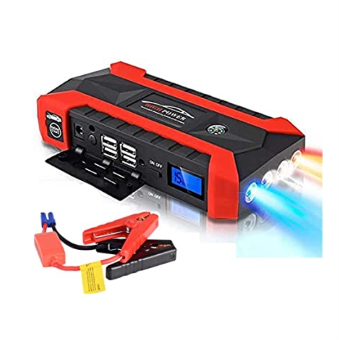 Φορητός εκκινητής μπαταρίας αυτοκινήτου. Παρέχει 12V. Λειτουργία LED φακού.
