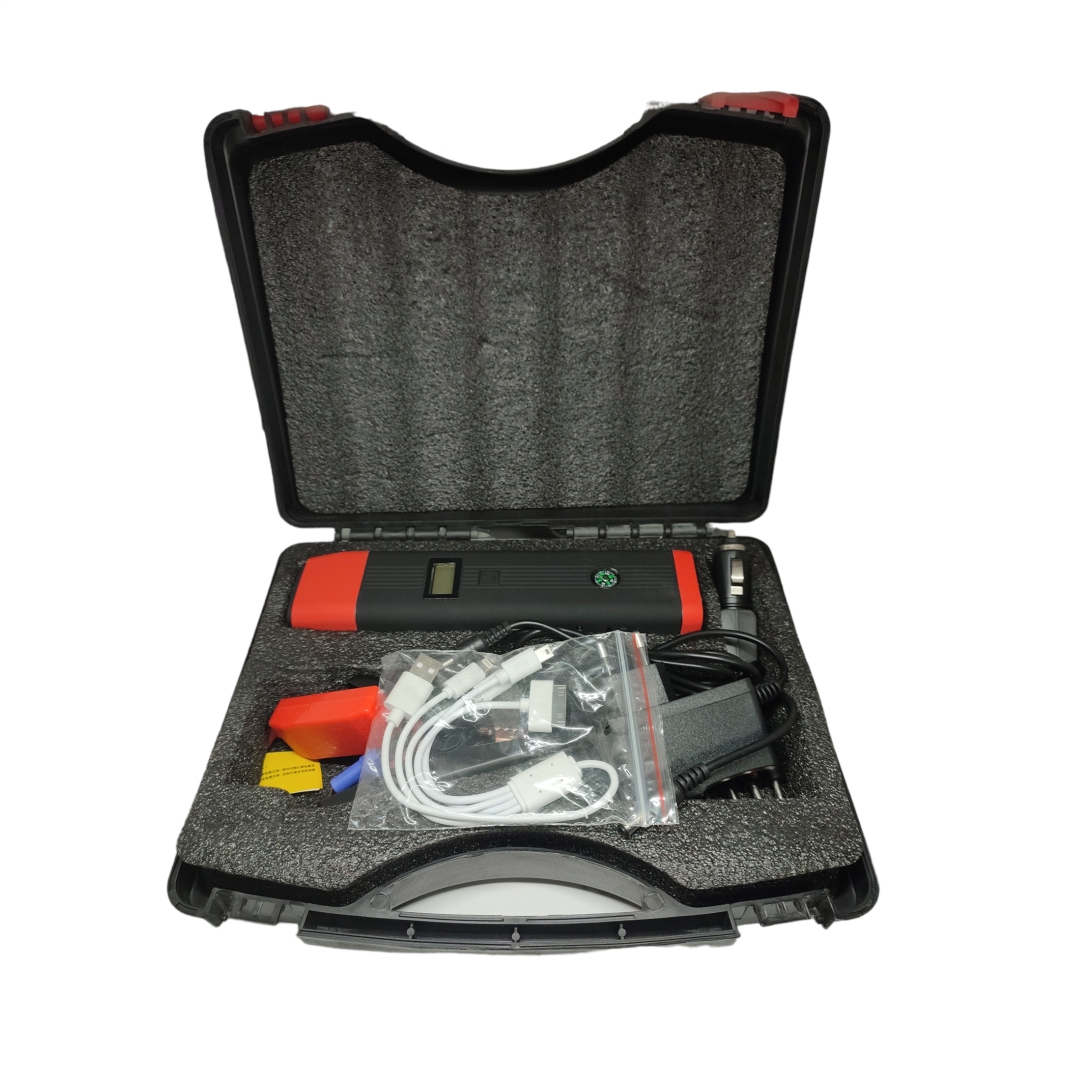 Φορητός εκκινητής μπαταρίας αυτοκινήτου. Παρέχει 12V. Λειτουργία LED φακού. Διαθέτει 2 θύρες USB.