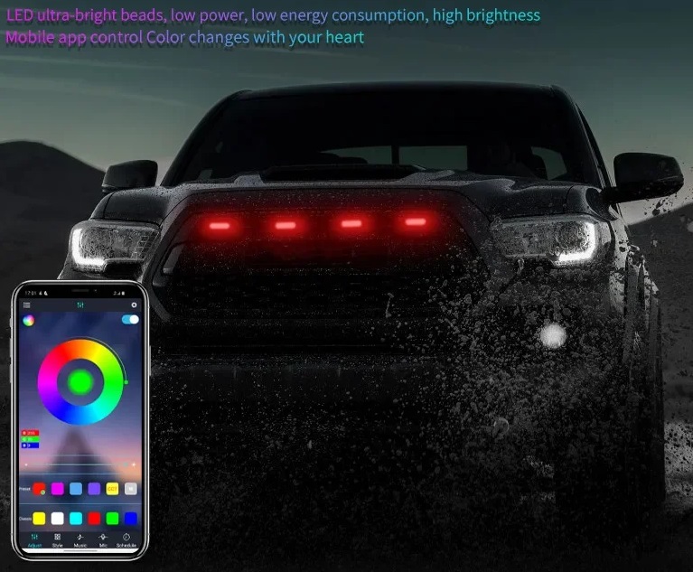 Φώτα ημέρας αυτοκινήτου LED, σετ 4 τεμαχίων, τηλεχειριζόμενα μέσα App από το smartphone σας,