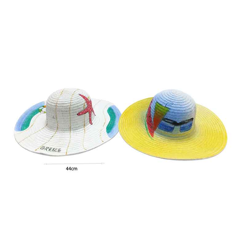 Γυναικείο καπέλο παραλίας ψάθινο με εντυπωσιακά καλοκαιρινά σχέδια, ιδανικό για προστασία από τον ήλιο με στυλ. Ο φαρδύς του γείσος προσφέρει αποτελεσματική σκίαση, ενώ η ελαφριά κατασκευή εξασφαλίζει άνεση κατά τη διάρκεια της ημέρας.