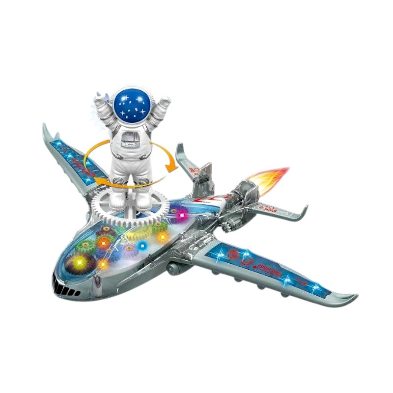 Ηλεκτρονικό αεροπλάνο με ήχο και φωτισμό, σε υπέροχο διαφανή σχεδιασμό με ιδιαίτερες λεπτομέρειες και περιστρεφόμενη φιγούρα αστροναύτη για τους μικρούς λάτρεις του διαστήματος!