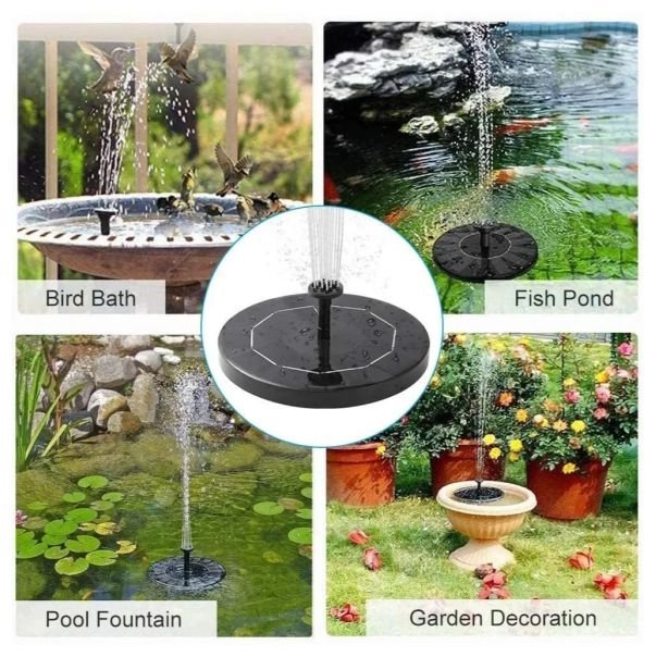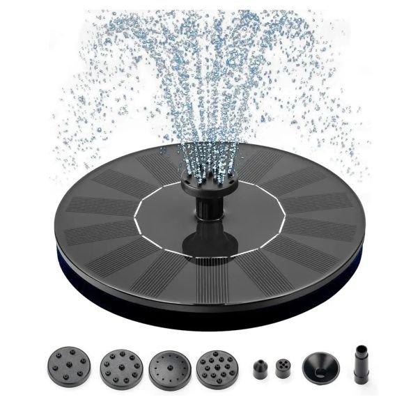 Ένα μικρό ηλιακό, αυτόματο συντριβανάκι για πισίνες και λίμνες, ο ιδανικός τρόπος να διακοσμήσετε την αυλή του σπιτιού σας. Διαθέτει 3 διαφορετικές κεφαλές για να επιλέξετε τον τρόπο και τα σχέδια που θα κάνει το νερό που εκτοξεύεται. Eξαιρετική διακόσμηση, ενώ ακόμα θα κρατά τα κουνούπια μακριά από τα στάσιμα νερά
