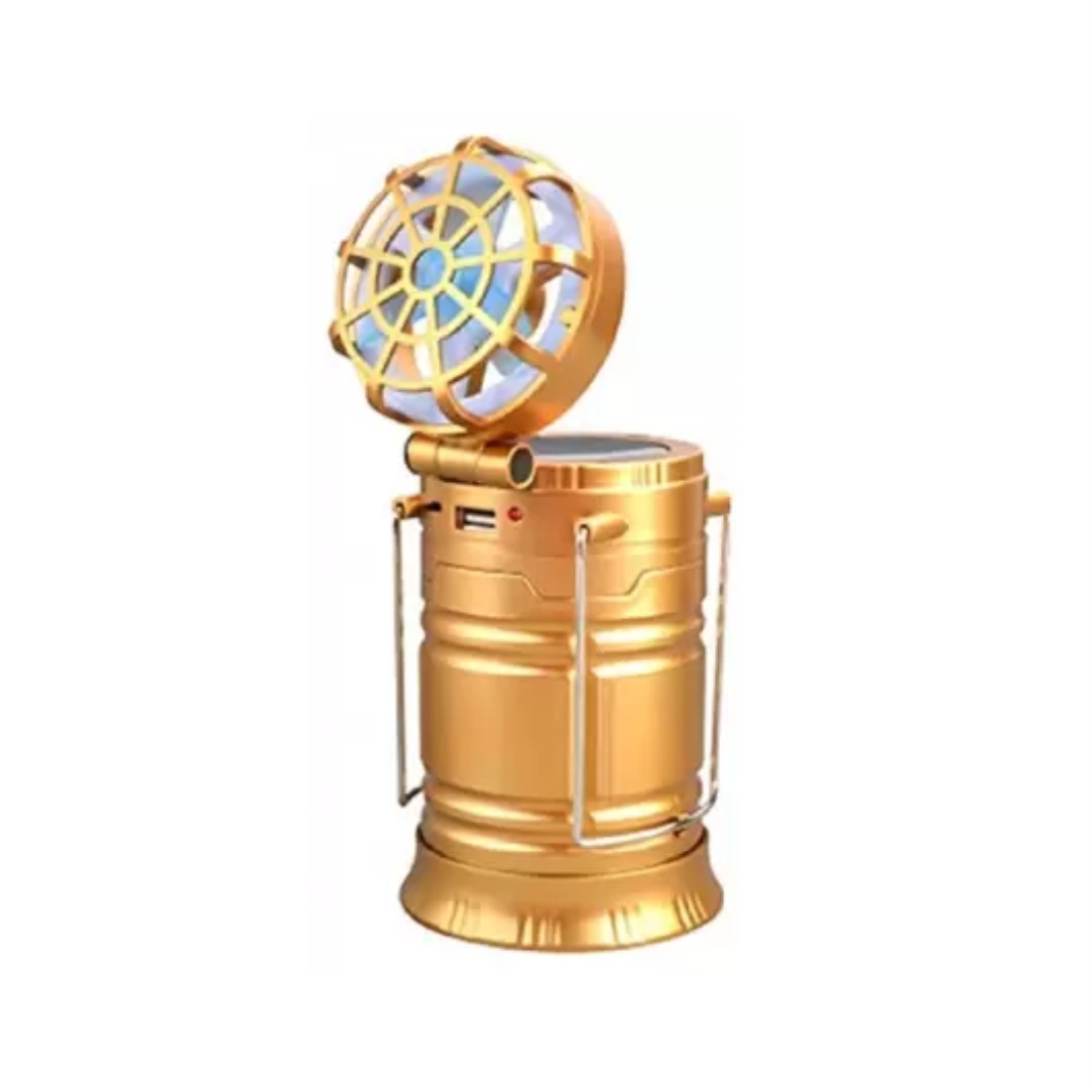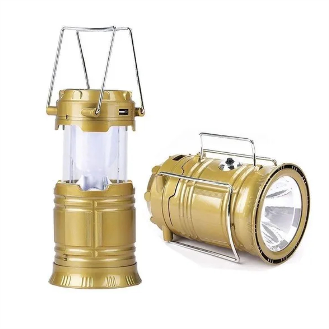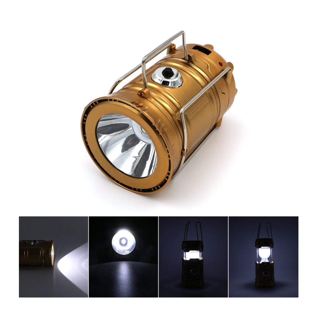 Ένα ηλιακό φανάρι για κάμπινγκ που διαθέτει ηλιακό πάνελ στο πάνω μέρος που φορτίζει από τον ήλιο. Χρεώνεται. Επαναφορτιζόμενη χαμηλή κατανάλωση ενέργειας. Περιλαμβάνει λάμπα LED, πολύ φωτεινό. Διαθέτει θύρα USB. Διαθέτει και φακό στο κάτω μέρος. Ισχύς 1W. Τάση 220V. Αριθμός LED 6.
