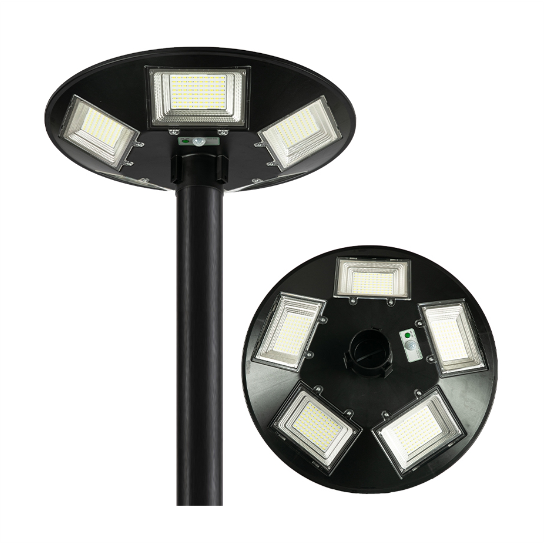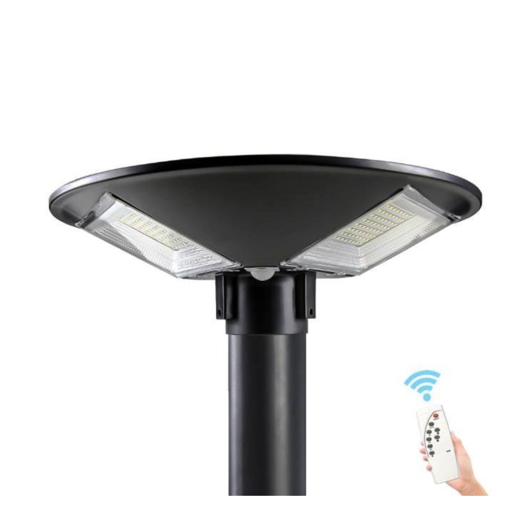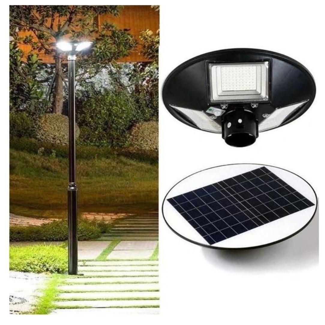 Ηλιακό φωτιστικό εξωτερικού χώρου. Διαθέτει ενσωματωμένο ηλιακό Panel τροφοδοσίας και αισθητήρα ανίχνευσης κίνησης. Ιδανικό για φωτισμό δρόμων ή του κήπου. Ισχύ LED 150W. Ιδανικός για να έχετε ορατότητα κατά τη διάρκεια της νύχτας. Δεν χρειάζεται να συνδεθεί στο κεντρικό ηλεκτρικό δίκτυο, γεγονός που εξοικονομεί χρήματα και απλοποιεί τη διαδικασία εγκατάστασης του. Διαθέτει χειριστήριο. Διαστάσεις 425x130x425mm. Αδιαβροχοποίηση IP66. Φωτεινότητα 6500Κ.