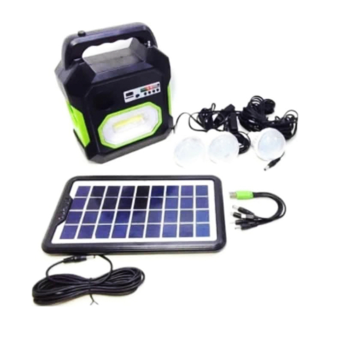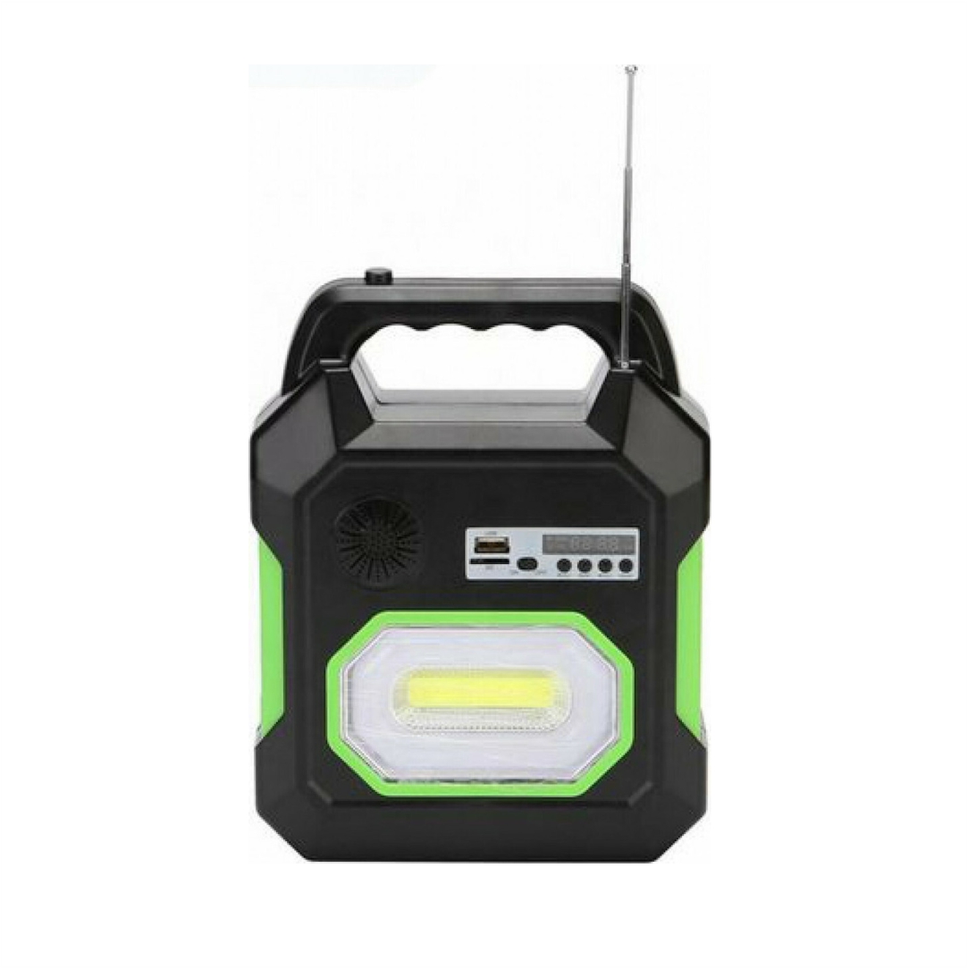 Ηλιακός φορτιστής φορητών συσκευών και σύστημα φωτισμού. Συμβατός με τα περισσότερα κινητά τηλέφωνα και άλλες ηλεκτρονικές συσκευές. Διαθέτει θύρα USB. Μέγιστη τάση τροφοδοσίας 9V. Ισχύς πάνελ 3.5W. Διαστάσεις πάνελ 27×15.5cm. Ιδανικό για κινητά, ηχεία, φακούς και άλλες συσκευές. Χρόνος φόρτισης πάνελ 12 ώρες. Διαθέτει 3 λάμπες. Επίσης διαθέτει MP3, FM και Bluetooth.