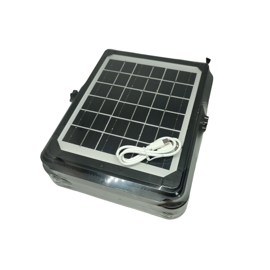 Ηλιακός φορτιστής φορητών συσκευών και σύστημα φωτισμού. Συμβατός με τα περισσότερα κινητά τηλέφωνα και άλλες ηλεκτρονικές συσκευές. Διαθέτει θύρα USB. Μέγιστη τάση τροφοδοσίας πάνελ 5V, ισχύς 5W. Διαστάσεις πάνελ 27x21cm. Ιδανικό για κινητά, ηχεία, φακούς και άλλες συσκευές. Φακός 195 led και ισχύς 200W. Μπαταρία 3.7V 14000mAh.
