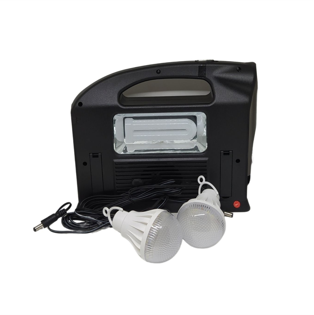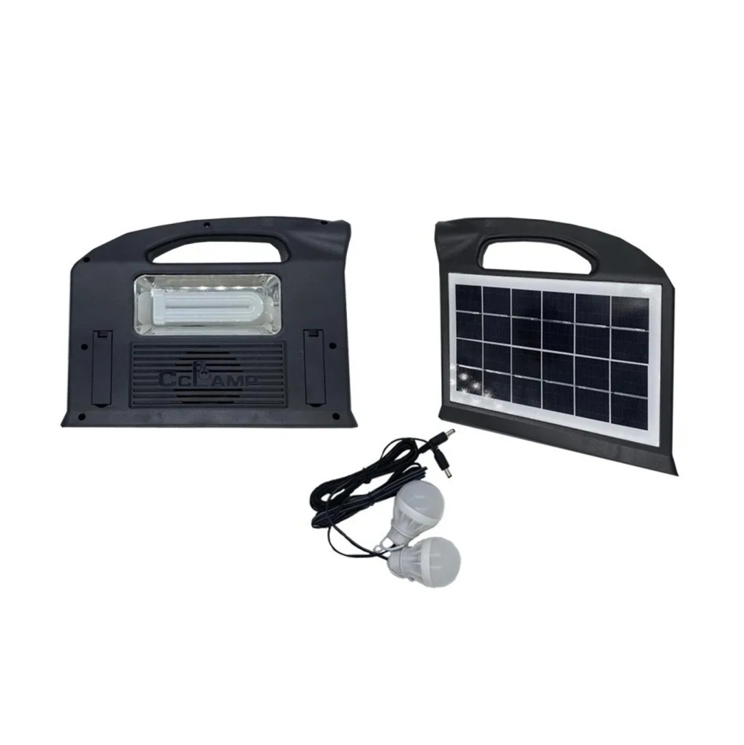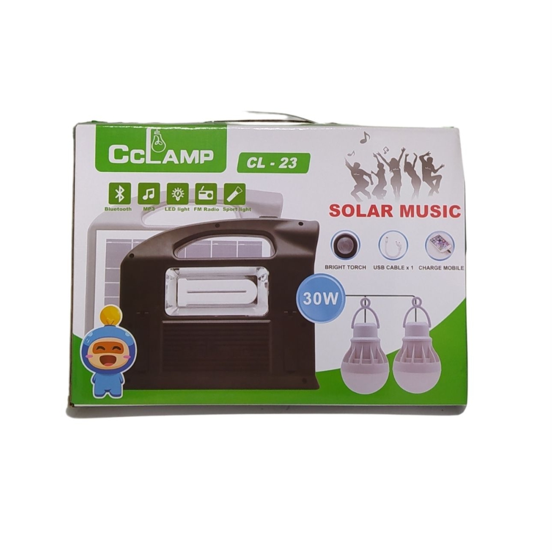 Ηλιακός φακός και ηχείο. Ιδανικό όταν δεν υπάρχει παροχή ρεύματος. Διαθέτει ενσωματωμένο ηλιακό πάνελ για την φόρτιση. Περιλαμβάνει 2 λάμπες led χαμηλής κατανάλωσης. Λειτουργεί και σαν power bank για να φορτίζετε τις ψηφιακές σας συσκευές. Διαθέτει θύρα USB και υποδοχή TF κάρτα . Διαθέτει χερούλι μεταφοράς. Διαστάσεις 24x21x5cm. Χρόνος φόρτισης 8-15 ώρες στο ηλιακό φως. Λειτουργία FM. Χρόνος λειτουργίας 8-20 ώρες. Ηλιακό πάνελ 3.8W. Led power 30W.