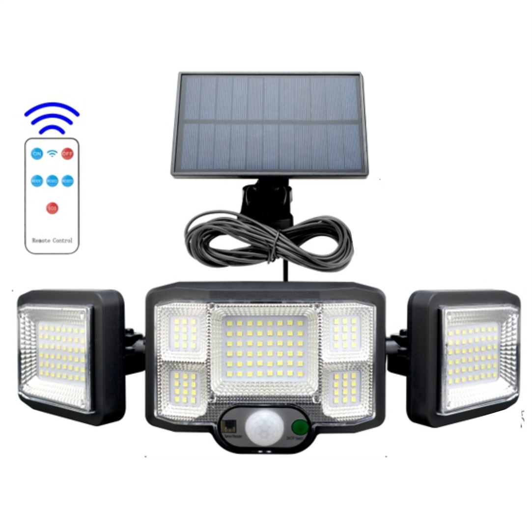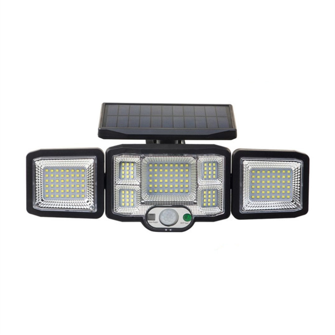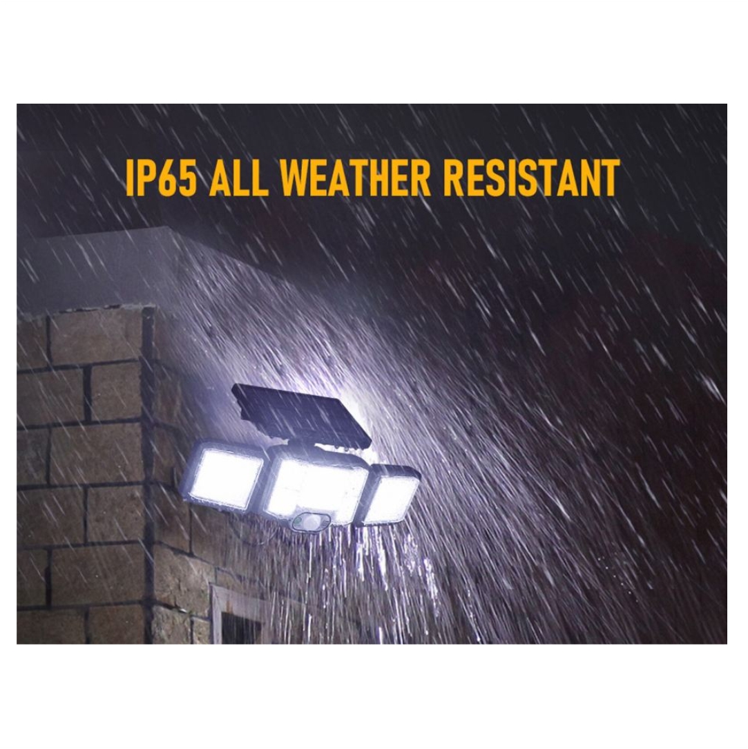 Ηλιακός προβολέας για να φωτίσετε τους εξωτερικούς χώρους του σπιτιού σας. Ο προβολέας επαναφορτίζει αποκλειστικά και μόνο από τον ήλιο. Διαθέτει αισθητήρα κίνησης για να ενεργοποιείται όταν ανιχνεύεται κίνηση στον χώρο σας. Έχει 3 λειτουργίες φωτισμού: λειτουργία χαμηλού φωτισμού τη νύχτα, με ισχυρό φωτισμό όταν ανιχνεύεται κίνηση, επαγωγή ανθρώπινου σώματος + λειτουργία χαμηλού φωτισμού και λειτουργία χαμηλού φωτισμού. Αριθμός λαμπτήρων 197 SMD led. Ενσωματωμένη επαναφορτιζόμενη μπαταρία λιθίου.  Aπόσταση ανίχνευσης 2-3μ. Αδιάβροχο IP65. Υλικό ABS. Διαθέτει ring alert. Περιλαμβάνει χειριστήριο.