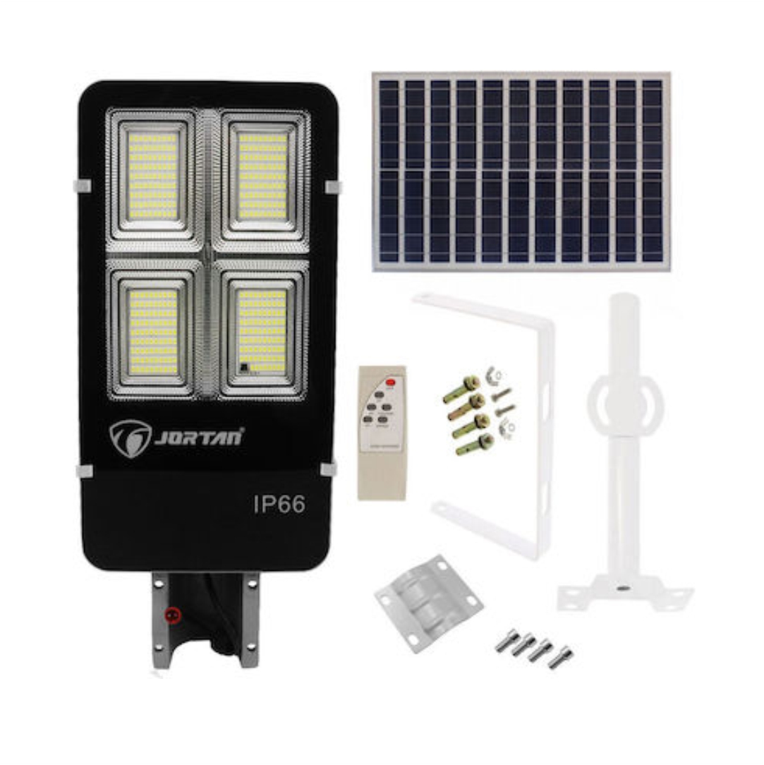 Ηλιακός προβολέας Led Jortan. Αδιαβροχοποίηση IP66. Ισχύς 300W. Ιδανικός για ένα ασφαλέστερο νυχτερινό περιβάλλον. Έχει υψηλή φωτεινότητα και μεγάλη διάρκεια ζωής. Φωτεινότητα 6500K. Διαστάσεις προβολέα 50x22x5cm. Διαθέτει χειριστήριο και πάνελ.