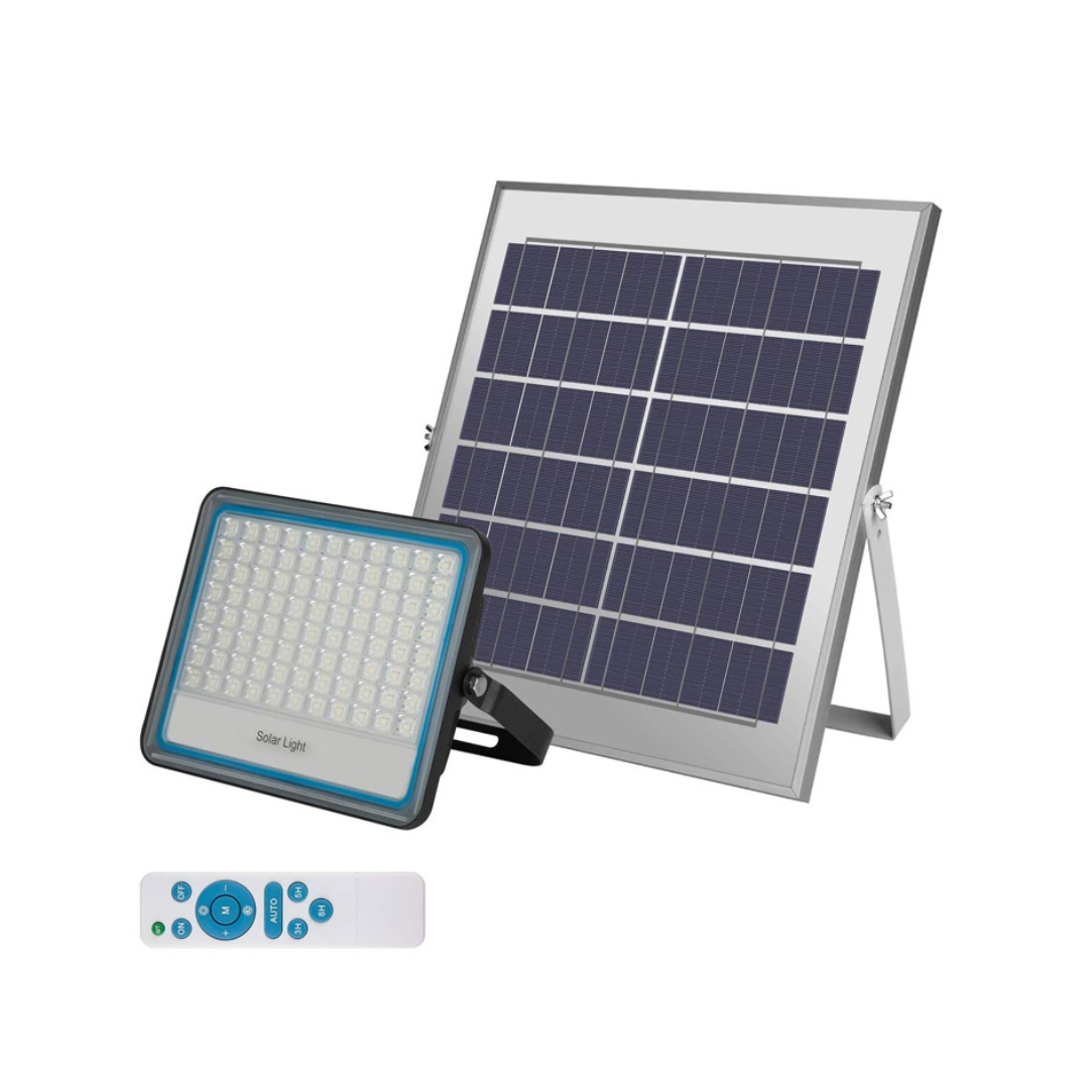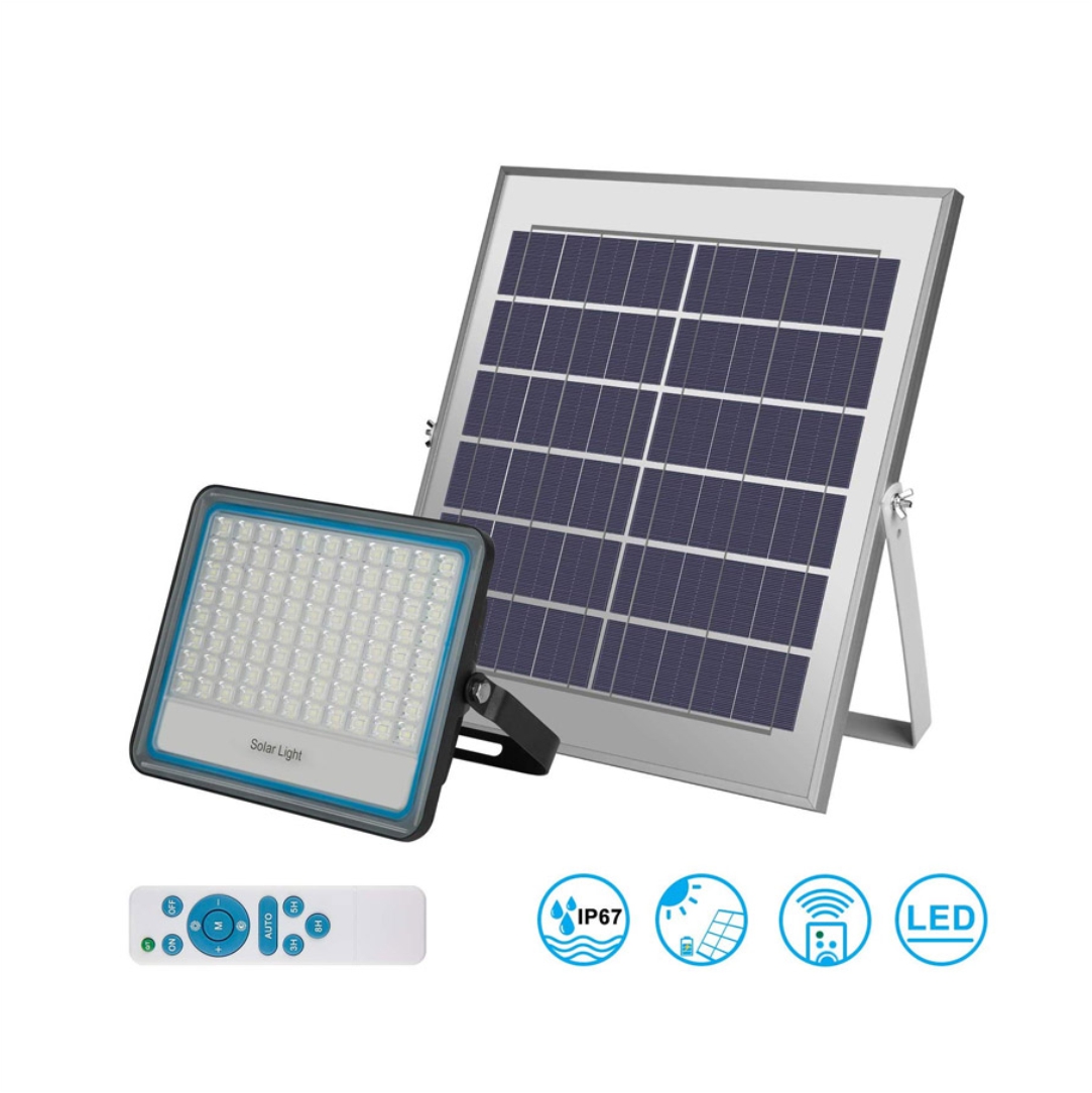 Ηλιακός προβολέας Led. Ιδανικός για ένα ασφαλέστερο νυχτερινό περιβάλλον. Έχει υψηλή φωτεινότητα και μεγάλη διάρκεια ζωής. Ισχύς 60W. Φωτεινότητα 6500Κ. Αδιαβροχοποίηση IP67. Διαθέτει χειριστήριο και πάνελ. Διαστάσεις προβολέα 21×16.5x5cm. Με πλήρη φόρτιση λειτουργεί περίπου12 ώρες, ανάλογα με την επιλογή προγράμματος.