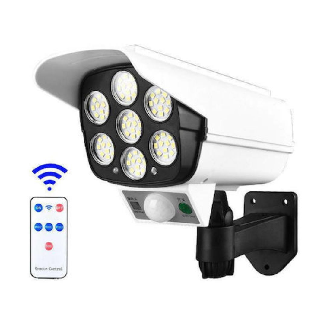 Ηλιακός προβολέας για να φωτίσετε τους εξωτερικούς χώρους του σπιτιού σας. Ένα προϊόν που προσφέρει οικονομία και είναι οικολογικό. Ο προβολέας επαναφορτίζει αποκλειστικά και μόνο από τον ήλιο. Διαθέτει αισθητήρα κίνησης για να ενεργοποιείται όταν ανιχνεύεται κίνηση στον χώρο σας. Έχει 3 λειτουργίες φωτισμού: λειτουργία χαμηλού φωτισμού τη νύχτα, με ισχυρό φωτισμό όταν ανιχνεύεται κίνηση, απενεργοποιημένο τη νύχτα, αναβοσβήνει το κόκκινο φως, με ισχυρό φωτισμό όταν ανιχνεύεται κίνηση και λειτουργία δυνατού φωτισμού. Αριθμός λαμπτήρων 77 SMD led. Ενσωματωμένη επαναφορτιζόμενη μπαταρία λιθίου. Χρόνος φόρτισης 4-6 ώρες. Χρόνος λειτουργίας 8-10 ώρες. Εμβέλεια φωτισμού 30 τ.μ. Aπόσταση ανίχνευσης 3-5 μ. Αδιάβροχο IP65. Διαστάσεις φωτιστικού 20,5x9x16 εκ.
