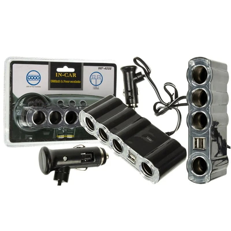 IN-CAR Αντάπτορας φορτιστής αναπτήρα αυτοκινήτου WF-4008 – Car 4 socket & 2 USB