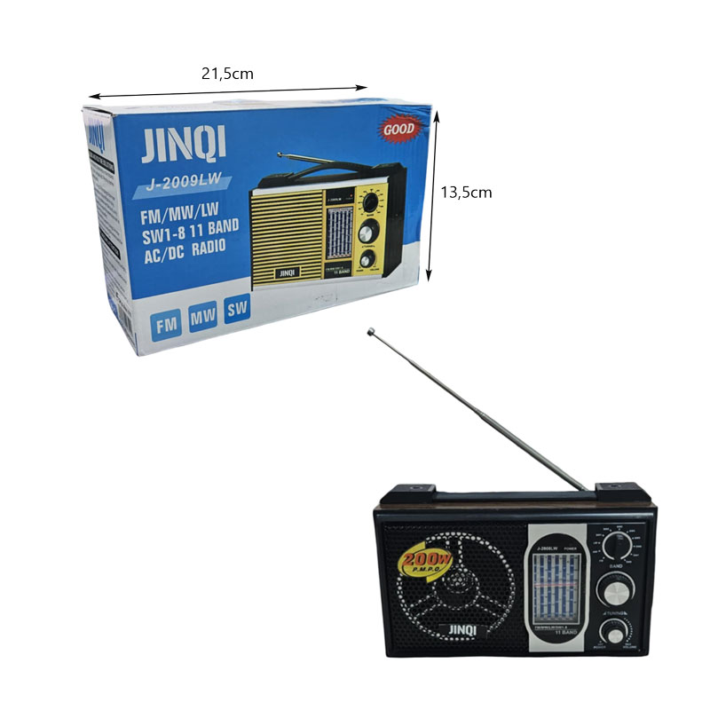 Απόλαυσε τη μουσική και τους αγαπημένους σου σταθμούς με στυλ, με το ρετρό ραδιόφωνο JINQI J-2009LW! Με vintage σχεδιασμό και 11 μπάντες ραδιοφώνου (FM/MW/LW/SW1–8), αυτό το ραδιόφωνο συνδυάζει την κλασική αισθητική με πρακτική λειτουργικότητα. Διαθέτει τηλεσκοπική κεραία για ισχυρό σήμα και επιλογή τροφοδοσίας AC/DC για χρήση τόσο στο σπίτι όσο και στην εξοχή.