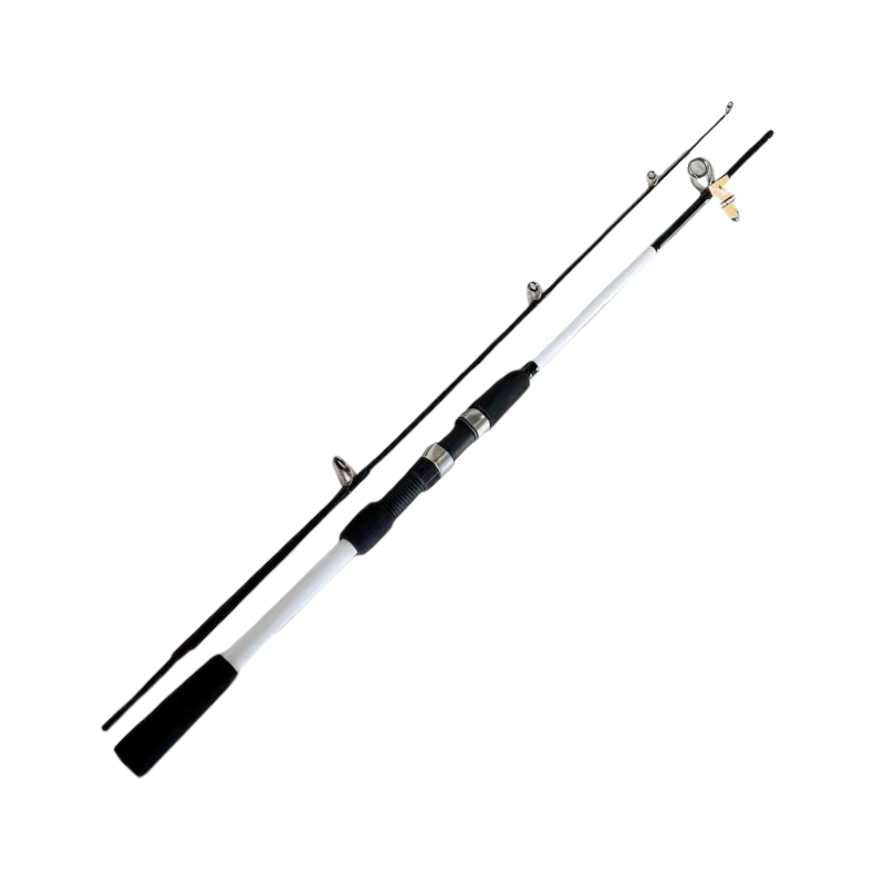 Καλάμι ψαρέματος δίσπαστο, από ενισχυμένες ίνες, οπλισμένο με οδηγούς και εργονομική λαβή υψηλής ποιότητας.