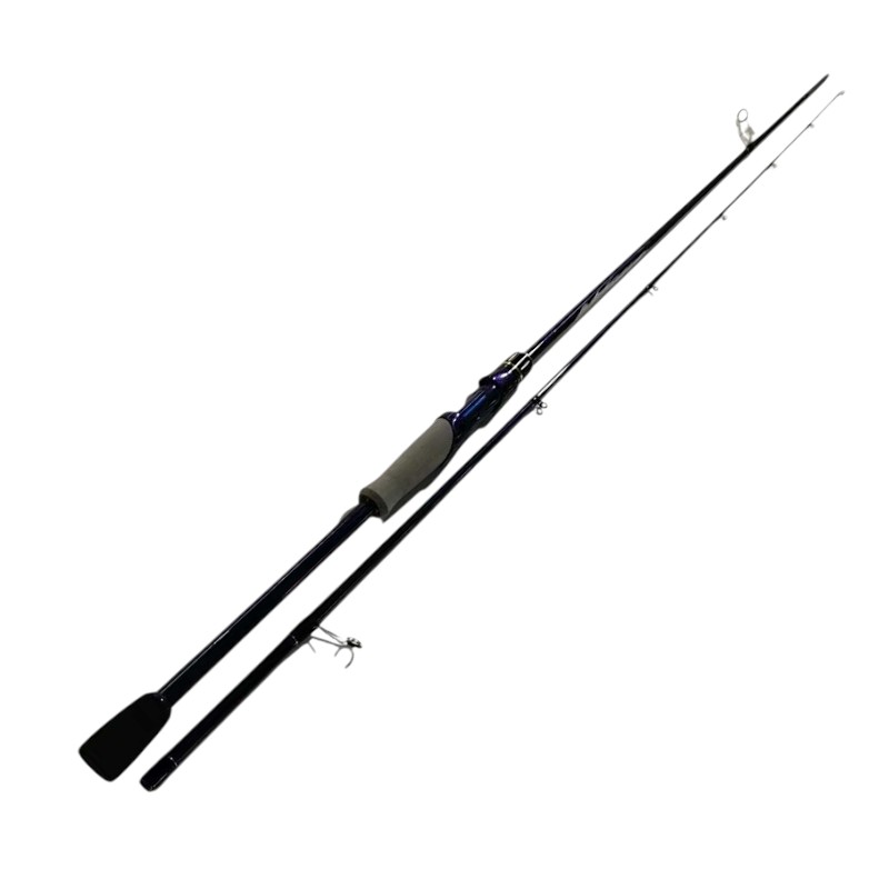 Καλάμι ψαρέματος δίσπαστο, υψηλής ποιότητα και αντοχής από ενισχυμένες ίνες, οπλισμένο με οδηγούς και εργονομική λαβή.