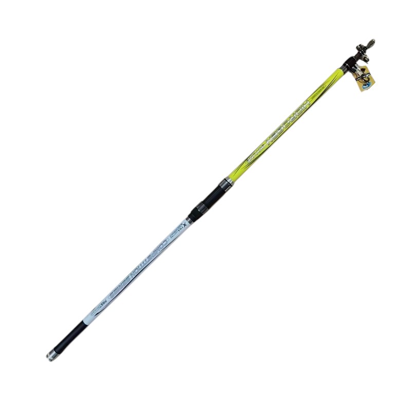 Καλάμι ψαρέματος, τηλεσκοπικό, κατασκευασμένο από ενισχυμένες ίνες υψηλής αντοχής, οπλισμένο με οδηγούς και εργονομική λαβή υψηλής ποιότητας.