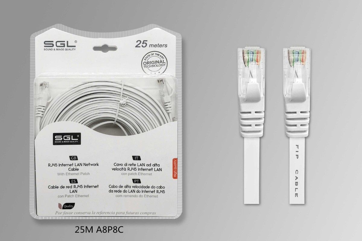 Καλώδιο δικτύου Ethernet, πλακέ, λευκό, μήκους 25m.