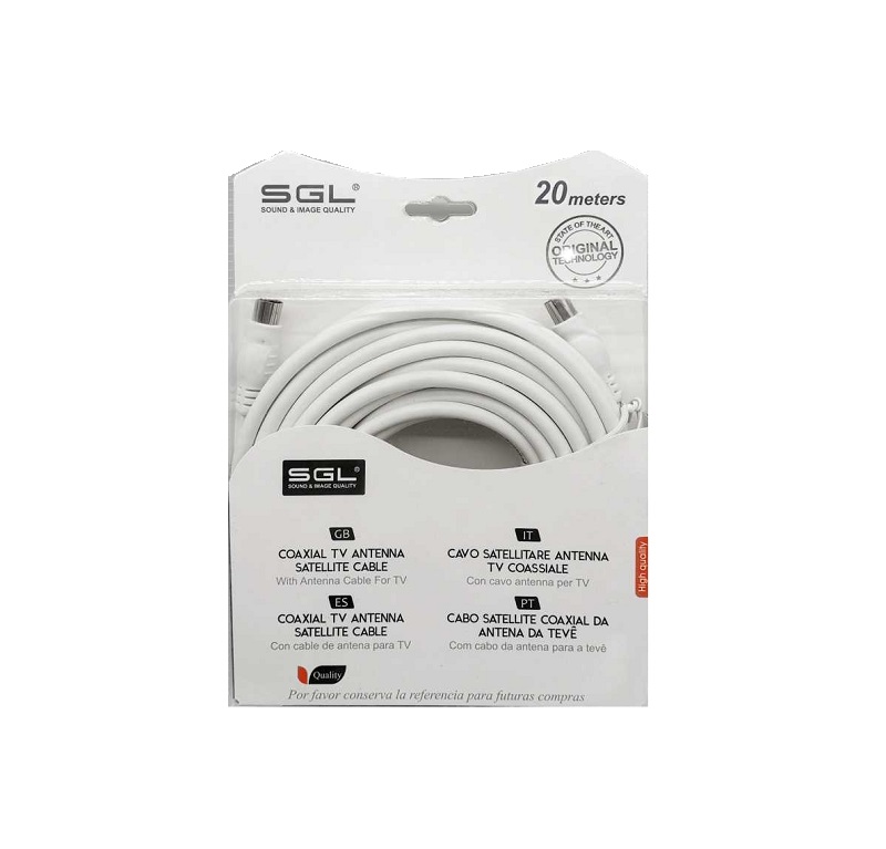 Καλώδιο κεραίας τηλεόρασης Male/Female, μήκους 20m, λευκό.
