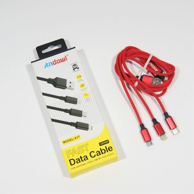 ΚΑΛΩΔΙΟ USB 3in1 ANDOWL PH-AN-X17