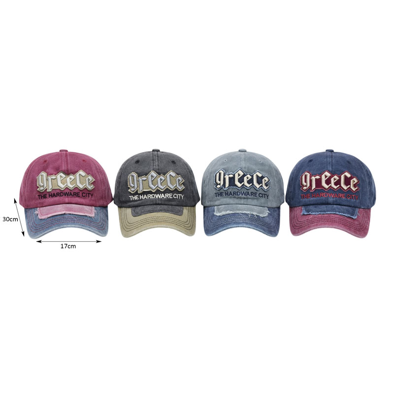 Καπέλο τύπου τζόκεϊ με εντυπωσιακό κεντημένο σχέδιο “Greece The Hardware City” στο μπροστινό μέρος. Διαθέτει μοντέρνο ξεβαμμένο εφέ και διακοσμητικές ραφές στο γείσο, προσφέροντας casual και δυναμικό στυλ για καθημερινή χρήση.