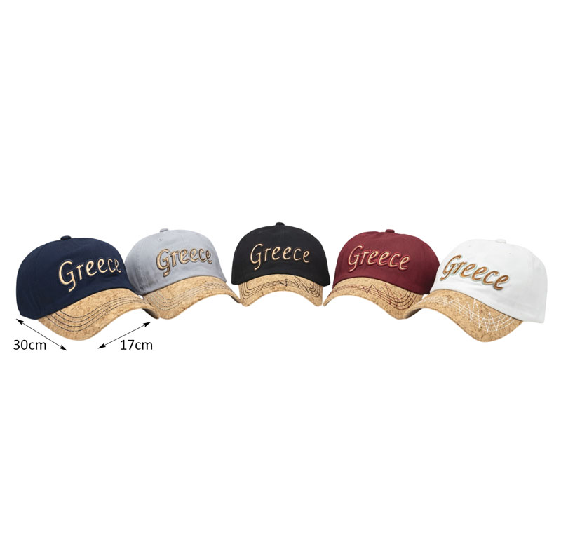 Καπέλο τύπου τζόκεϊ με κεντημένη επιγραφή Greece στο μπροστινό μέρος και ιδιαίτερο σχέδιο εμπνευσμένο από χάρτη στο γείσο. Ο μοντέρνος σχεδιασμός του συνδυάζει στυλ και τουριστικό χαρακτήρα, καθιστώντας το ιδανικό αναμνηστικό από την Ελλάδα.