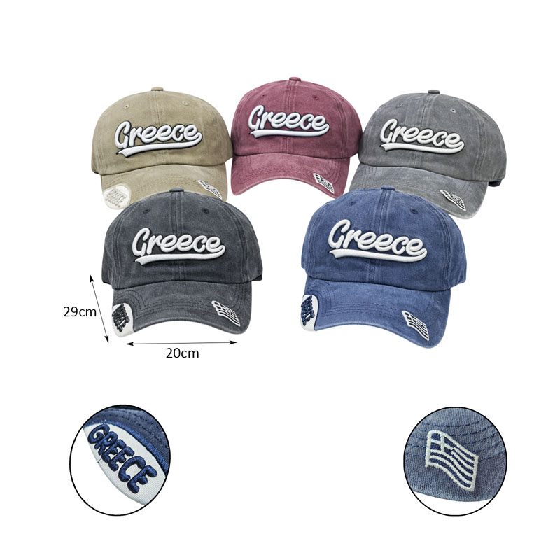Καπέλο τύπου τζόκεϊ με κεντημένη επιγραφή “Greece” στο μπροστινό μέρος και διακριτική λεπτομέρεια ελληνικής σημαίας στο γείσο. Διαθέτει μοντέρνο ξεβαμμένο εφέ που προσδίδει casual και καλοκαιρινό στυλ, ιδανικό για καθημερινή χρήση και διακοπές.
