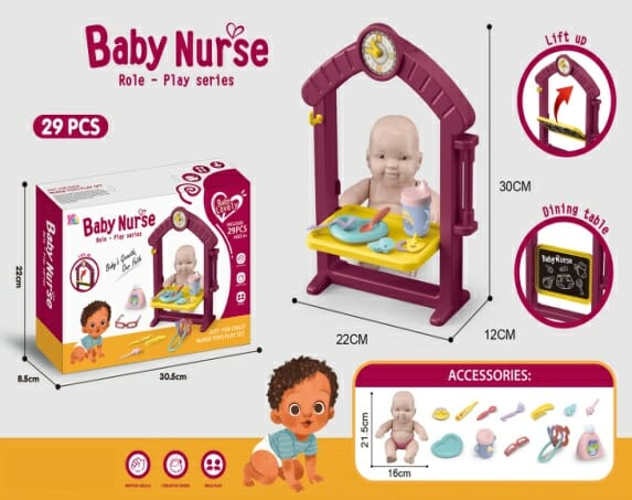 Καρεκλάκι φαγητού μωρού με κούκλα και όλα τα απαραίτητα αξεσουάρ για την ολοκληρωμένη φροντίδα και την περιποίηση του μωρού σου!
