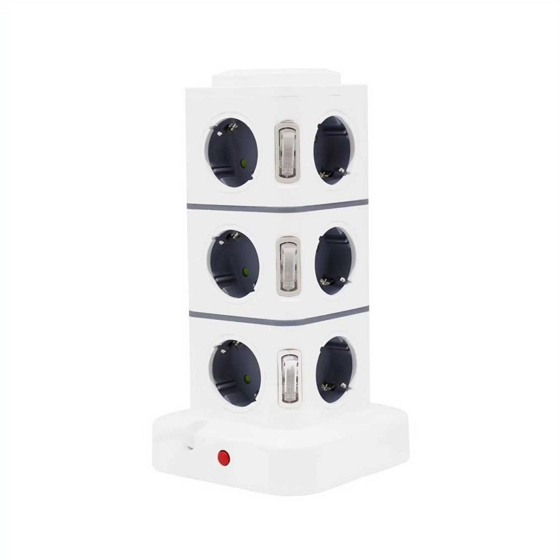 Κάθετο πολύπριζο 12 θέσεων με διακόπτες και πρίζα Σούκο – RC-G12P.