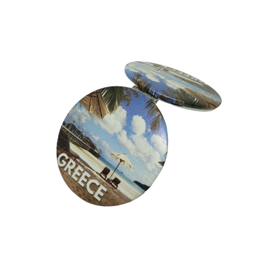 Καθρεφτάκι στρογγυλό Greece. Διαστάσεις 7x7cm. Ιδανικό για να το έχετε πάντα μαζί σας. Κατάλληλο για δώρο. Διαθέτει 2 καθρέφτες.