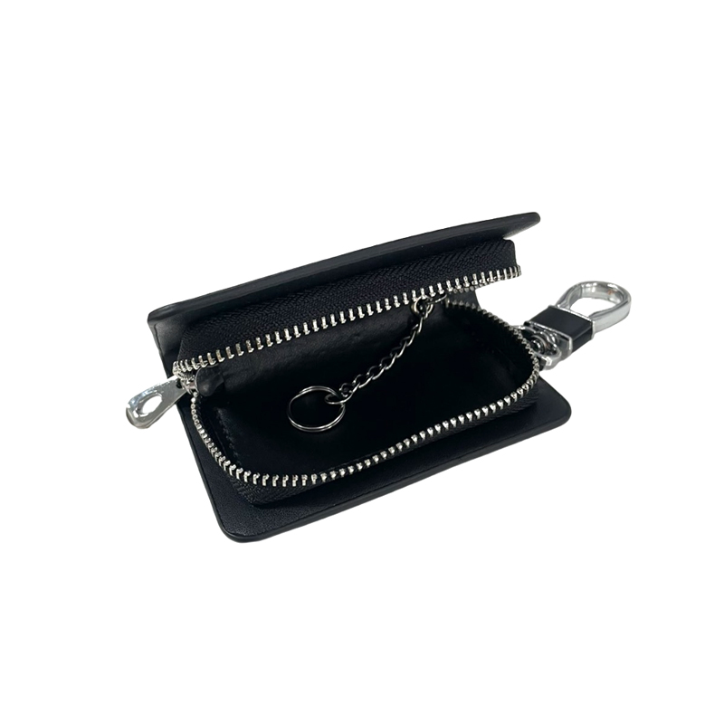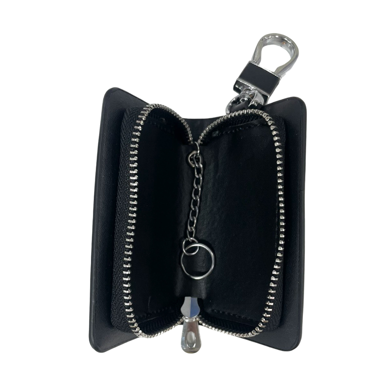 Κλειδοθήκη μπρελόκ από μαύρη δερματίνη στο εξωτερικό. Εξωτερικό κρίκο με αλυσιδάκι για να κρεμάτε τα κλειδιά σας κ.α.