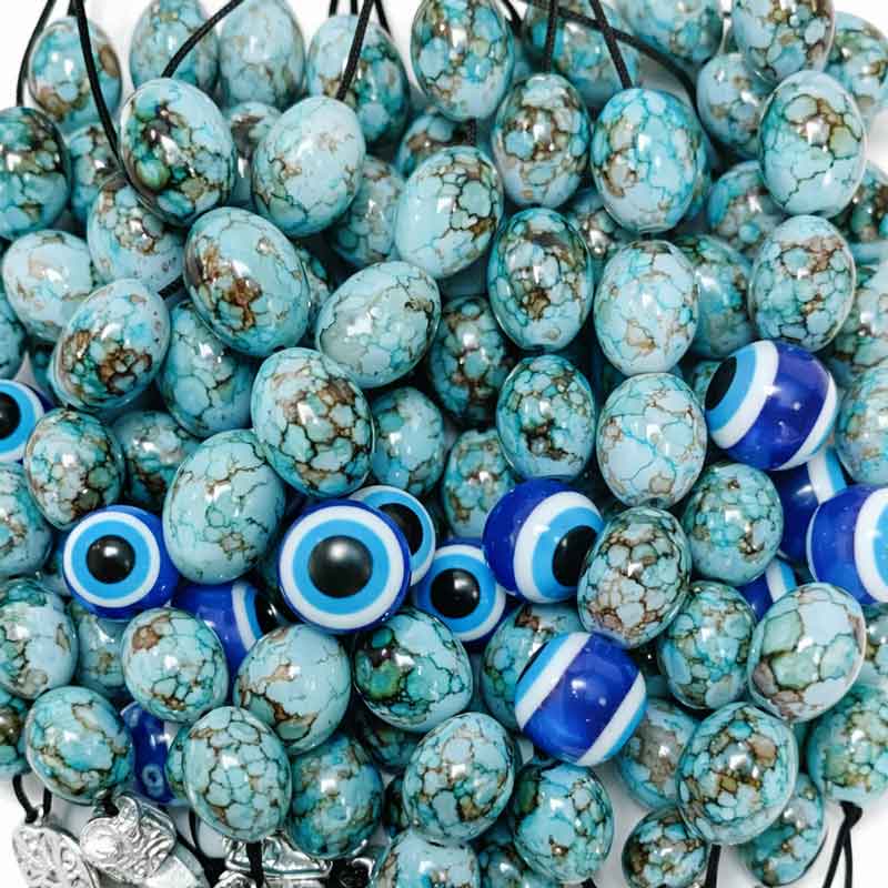 Παραδοσιακό κομπολόι μήκους περίπου 23 εκ., με οβάλ χάντρες και διακριτικό ματάκι στο κέντρο, σύμβολο προστασίας και θετικής ενέργειας. Ο συνδυασμός κλασικού σχεδιασμού και μοντέρνων αποχρώσεων το καθιστά ιδανικό για καθημερινή χρήση.