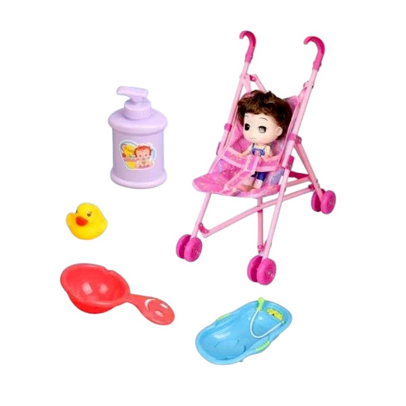 Κούκλα με σετ μπάνιου και καροτσάκι – 669-702C – 215564