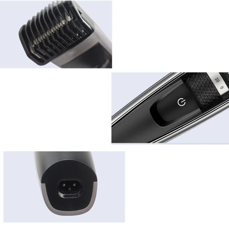 Επαναφορτιζόμενη κουρευτική μηχανή με λεπίδα ακριβείας από ανοξείδωτο ατσάλι και εντυπωσιακό design. Με μεγάλη αυτονομία μπαταρίας και εργονομικό σχεδιασμό κατάλληλη για κάθε είδους περιποίηση σε μαλλιά, γένια και σώμα.