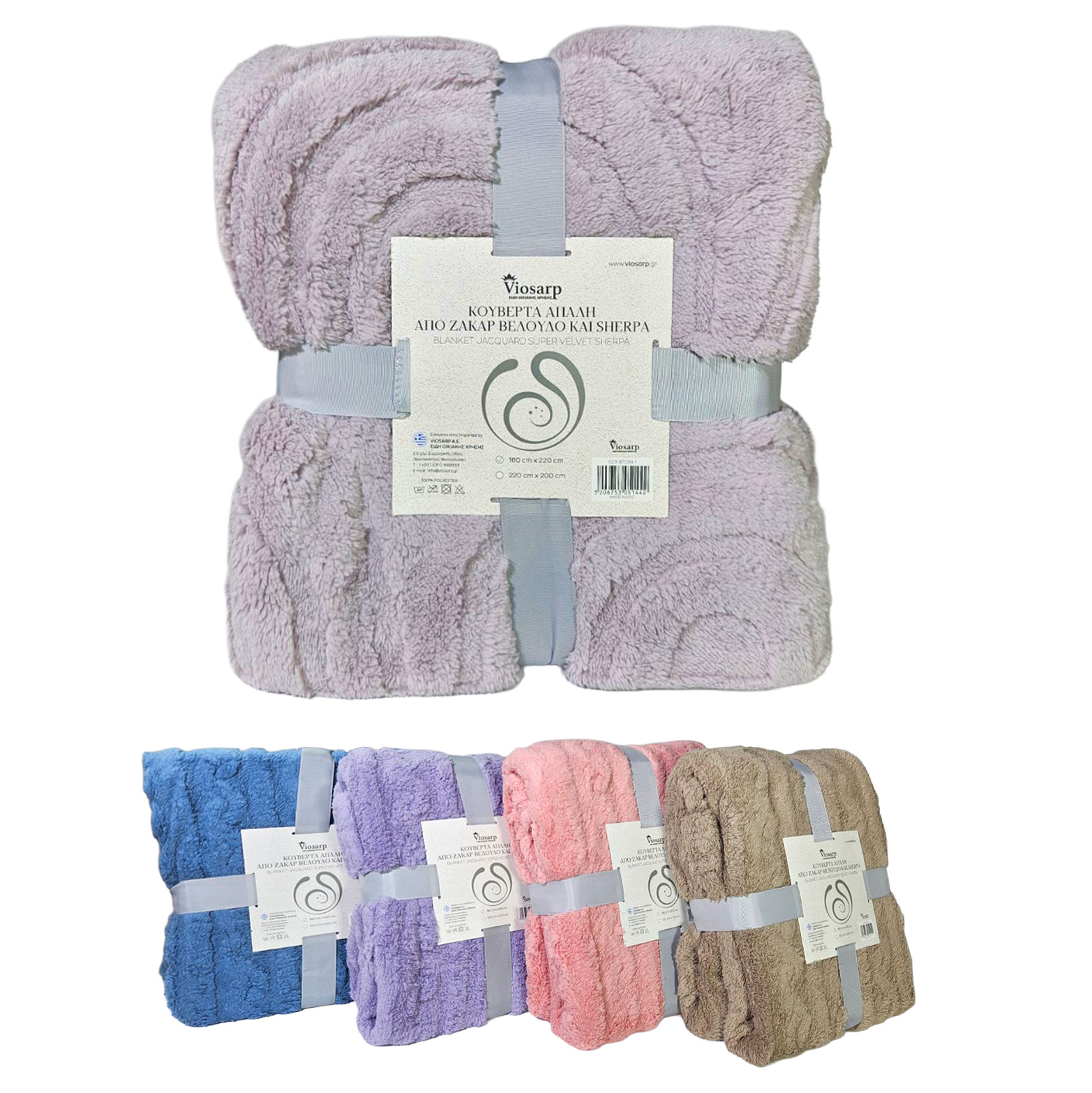 ΚΟΥΒΕΡΤΑ ΑΠΑΛΗ ΑΠΟ ΖΑΚΑΡ ΒΕΛΟΥΔΟ ΚΑΙ SHERPA 160x220cm NoG23-BT034-1