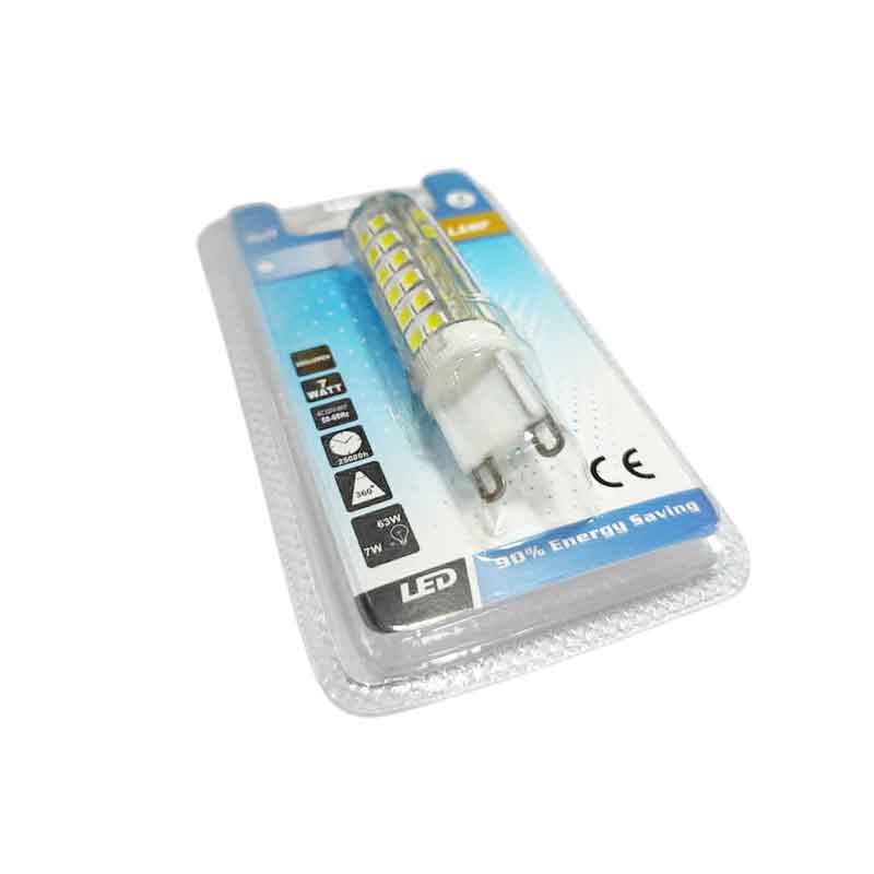 Λάμπα LED τύπου G9 ισχύος 7W και φωτεινότητας 580 lumen. Παρέχει ισχυρό και σταθερό φωτισμό με χαμηλή κατανάλωση ενέργειας. Κατάλληλη για οικιακούς και επαγγελματικούς χώρους, προσφέρει εξοικονόμηση έως 90% σε σχέση με τις παραδοσιακές λάμπες.