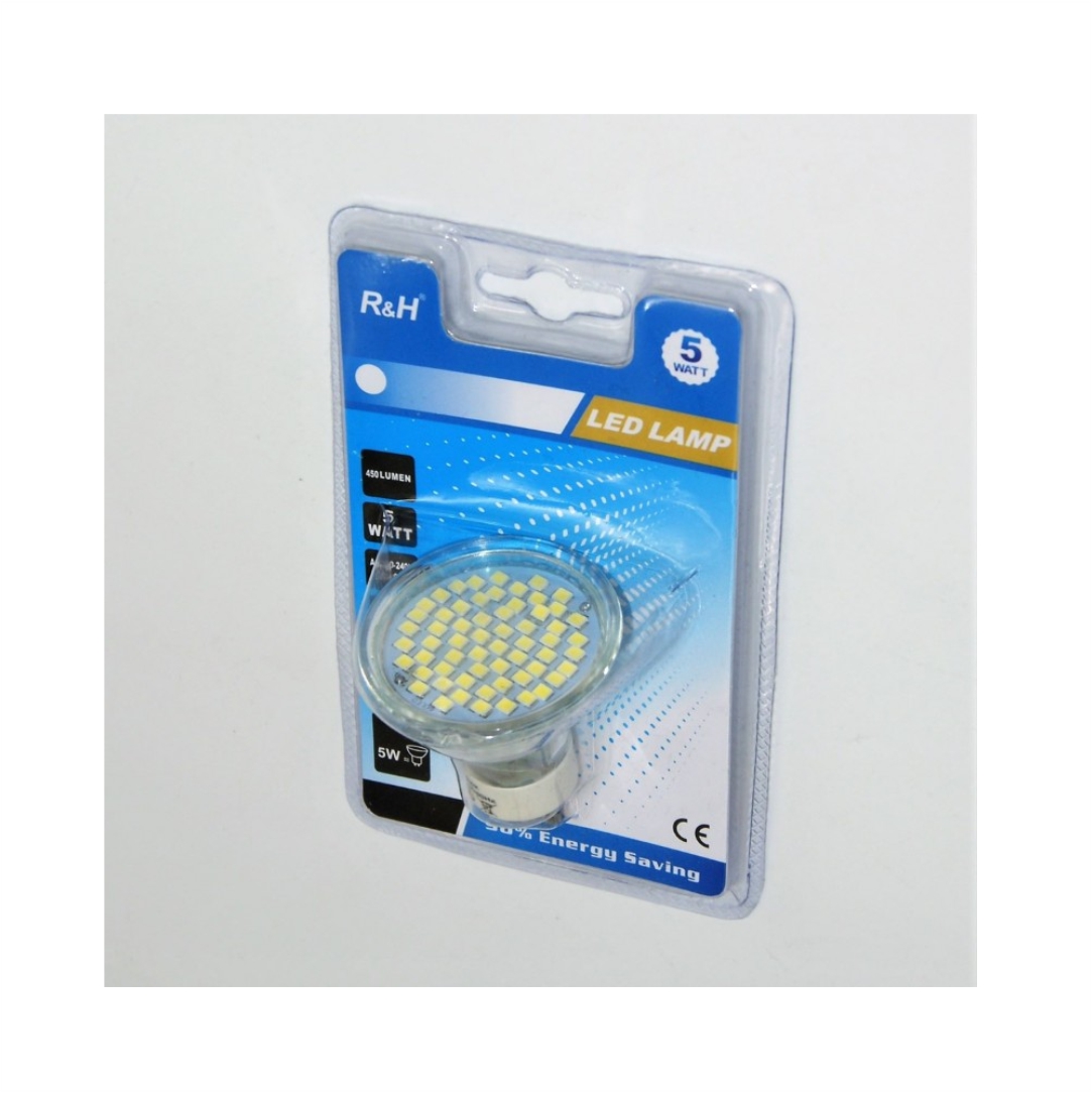 Λάμπα LED. Χαμηλή κατανάλωση. Εξοικονόμηση ενέργειας έως και 90%. Τροφοδοσία 5W και AC 220-240V. Lumen 450LM. Ανοιχτό χρώμα δροσερό (λευκό). Η γωνία δέσμης είναι 60 μοίρες.