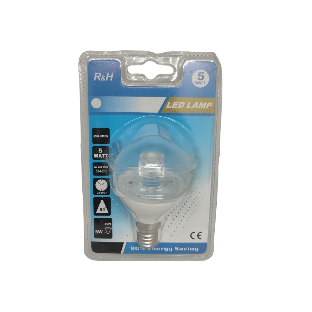 Λάμπα led. Χαμηλή κατανάλωση. Εξοικονόμηση ενέργειας έως και 90%. Ισχύς 5W και AC 220-240V. Lumens 450LM. Χρώμα φωτός ψυχρό (λευκό). Γωνία δέσμης φωτός 60 μοίρες.