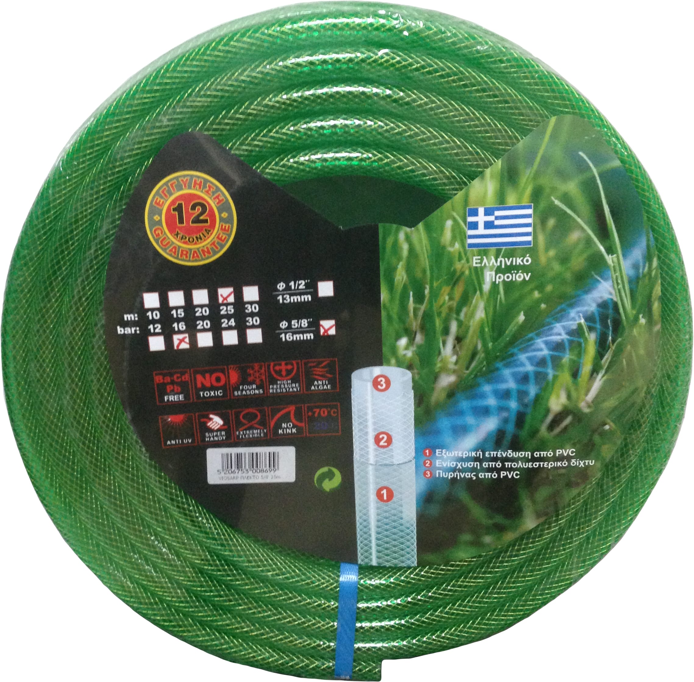 ΛΑΣΤΙΧΟ ΠΟΤΙΣΜΑΤΟΣ ΠΛΕΧΤΟ ΠΡΑΣΙΝΟ 5/8 ΤΩΝ 15Μ VIOSARP
