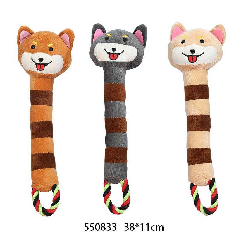 Λούτρινο παιχνίδι σκύλου – Soft Toy με σχοινί-χειρολαβή, κατασκευασμένο από μαλακό αλλά ιδιαίτερα ανθεκτικό, μη τοξικό υλικό. Θα γίνει το αγαπημένο καθημερινό παιχνίδι που το σκυλάκι σας θα λατρέψει.