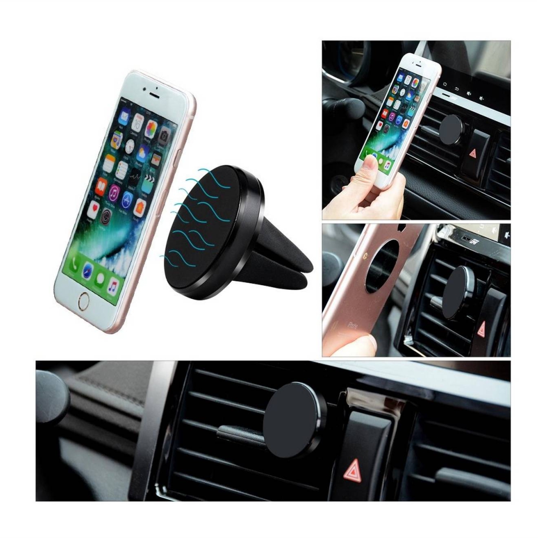 Μαγνητική βάση κινητού αυτοκινήτου. Στηρίζεται στον αεραγωγό του κλιματισμού ή του καλοριφέρ αυτοκινήτου. Η στήριξη της συσκευής στη βάση γίνεται με μαγνήτη τον οποίο μπορείτε να κολλήσετε είτε στη συσκευή σας είτε στη θήκη της.