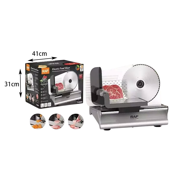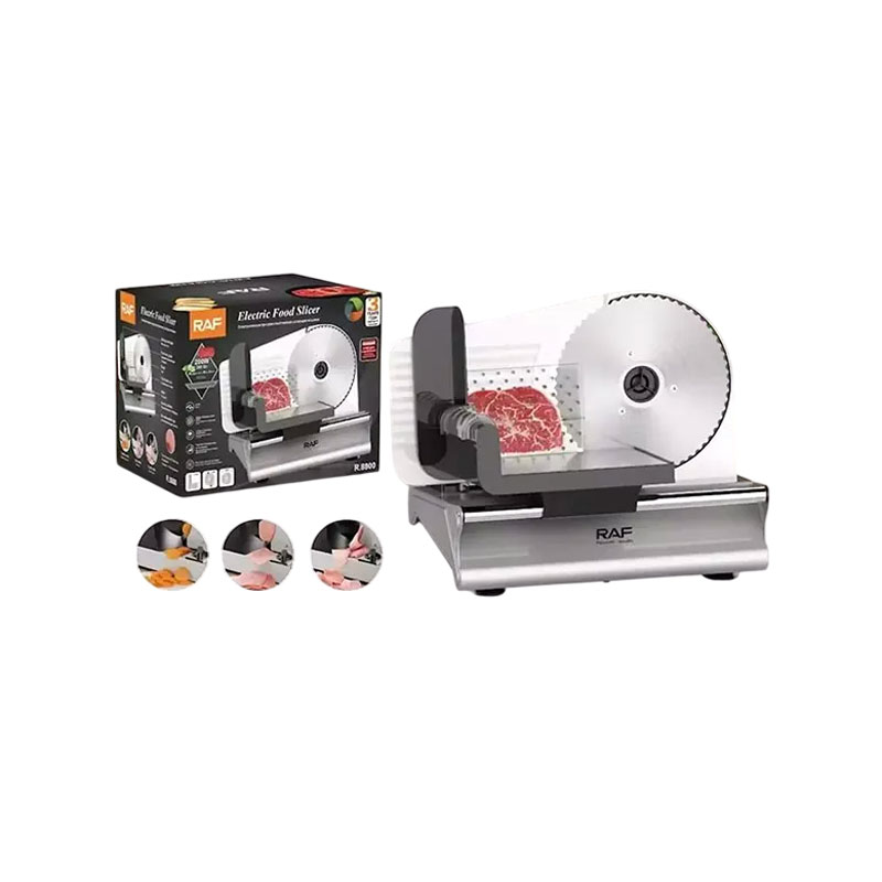 Ο Κόφτης Αλλαντικών Ηλεκτρικός 200W Inox RAF R8800 είναι μια συμπαγής συσκευή για την οικιακή κουζίνα, ιδανική για τον τεμαχισμό κρέατος, λουκάνικων, ημίσκληρων τυριών, σκληρών λαχανικών και φρούτων.
