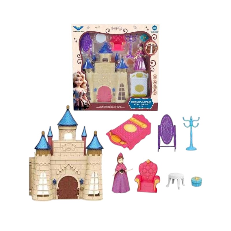 Mini Κουκλόσπιτο-κάστρο πριγκίπισσας με πλήρες σετ αξεσουάρ.