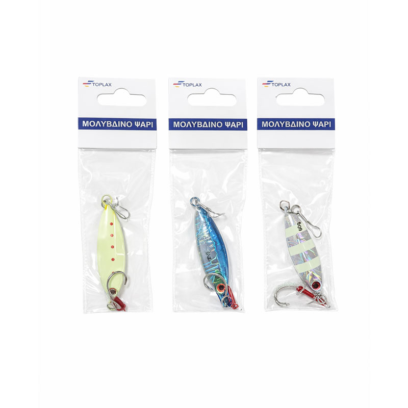 Μολυβένιο ψάρι τεχνητό δόλωμα, σχεδιασμένο για αποτελεσματικό ψάρεμα σε θάλασσα και γλυκά νερά. Η ρεαλιστική του εμφάνιση και τα έντονα χρώματα προσελκύουν την προσοχή των ψαριών, αυξάνοντας τις πιθανότητες επιτυχίας.